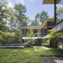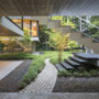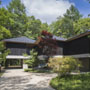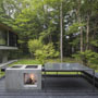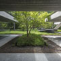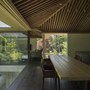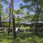 すると、襞のような凹凸に木々が入り込んで、一度にボリュームを感じることなく、西南と東南の視角を切ることもできる。内部では、垂木を現した方形天井がある居間と食堂をはじめ、様々な居場所がダイナミックに連なった。1階では、構造体が木の幹のように各棟の中央にあり、目線が抜ける木陰のような外部空間になった。- 所在地
