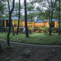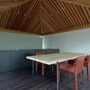 以上の条件から、方形屋根を持つ小さな棟に建物を分け、南に向かって雁行しながら大きく弓形に連なるように配した。