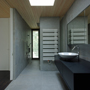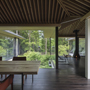 また、湿気対策と木立の丁度良い高さを眺めたいという意図から、居住域を2階に設けた高床の構成とした。その場合、建物をまとまった一つのボリュームにすると、大きさがそのまま外観に表れて、ひっそりとした佇まいになり難い。